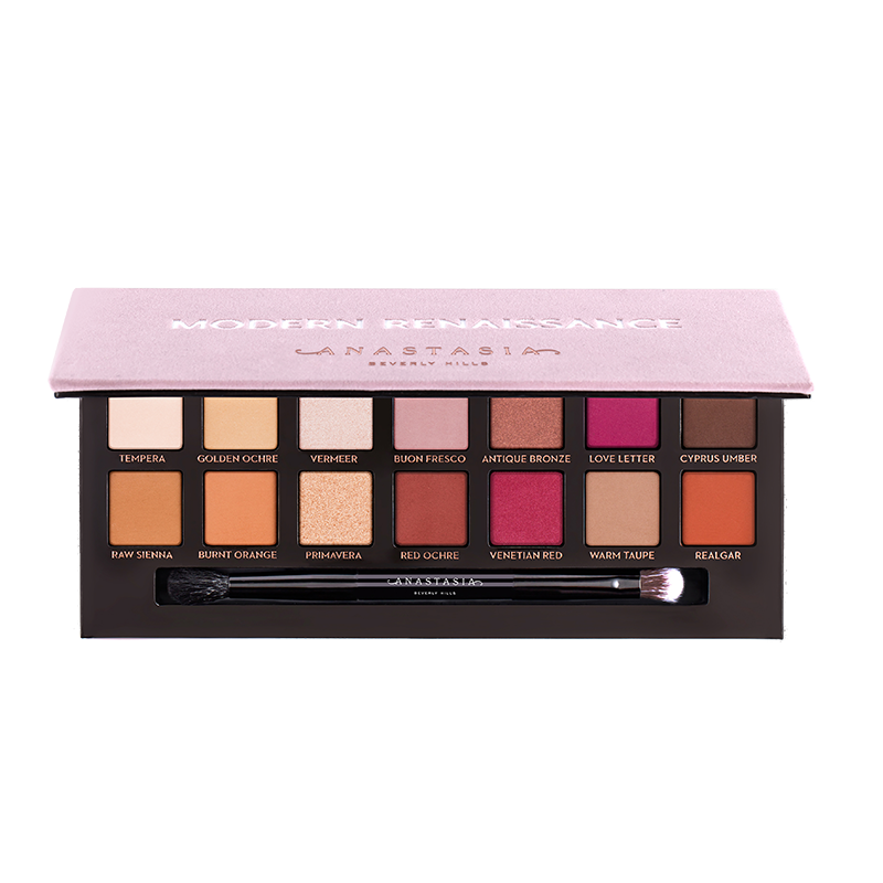 現代文藝復興眼彩盤內含14種顏色,質地分為霧面感和光澤金屬感。豐富的色選可輕鬆打造多種變化眼。其靈感源自文藝復興時期藝術樹脂和顏料的啟發,讓這款眼彩中的每款眼色均能恣意搭配、疊擦使用。從日常實用的大地色調到漿果紅色調的眼影都包含在內。