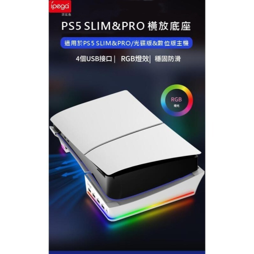 IPEGA PS5 SLIM&PRO/光碟版&數位版通用 主機橫躺放置支架 橫放架 USB HUB 新品現貨