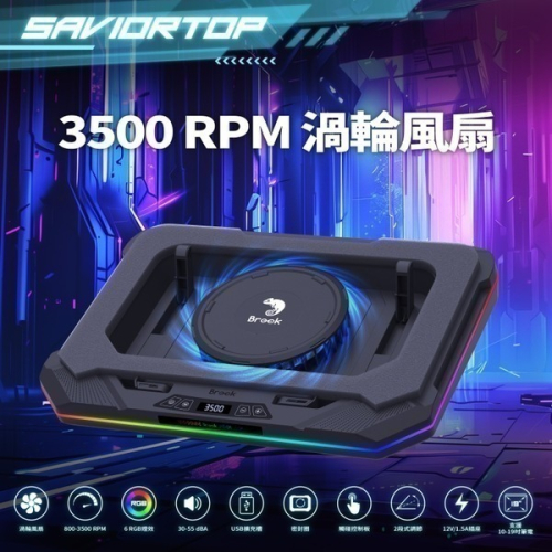 內建 高效能渦輪風扇,最高轉速 3500RPM,降溫可達 20°C,確保筆電穩定高效運作。