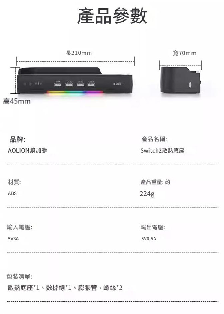 AOLION 澳加獅 NS2 SWITCH 2 原廠底座 散熱風扇座 散熱底座 +USB HUB擴充器 新品現貨
