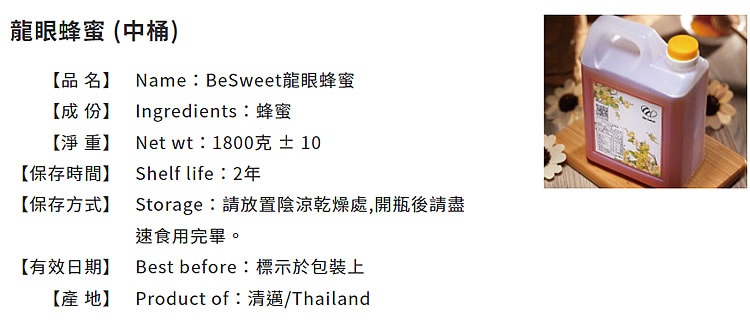 【Be Sweet 】100%天然單一龍眼蜂蜜1800g