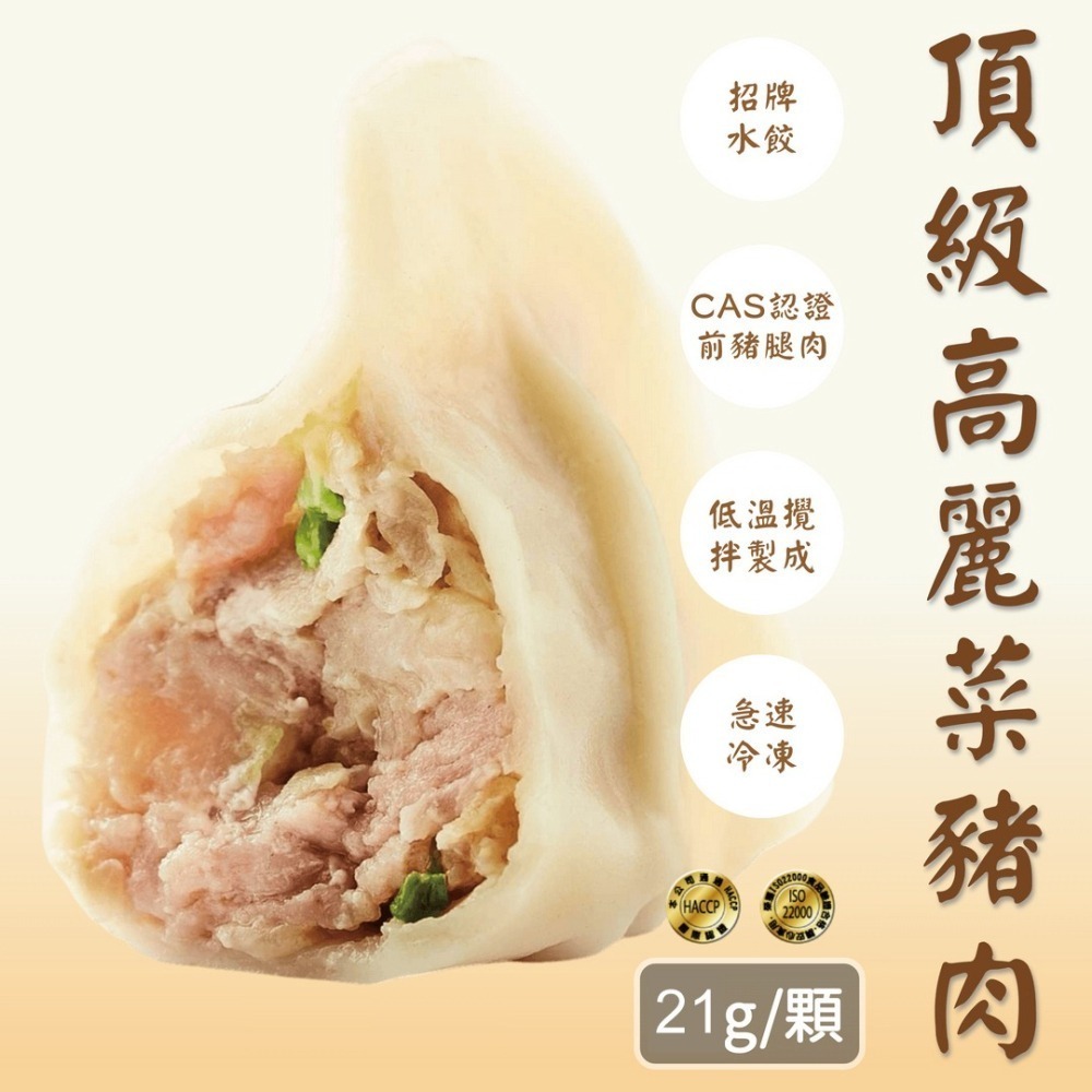 本公司『招牌水餃』, 與全台連鎖KTV熱銷水餃同等級!餡料採用高山高麗菜、CAS認證前豬腿肉、三星蔥,全程低溫攪拌,絕對讓你吃得出與一般水餃的不同。