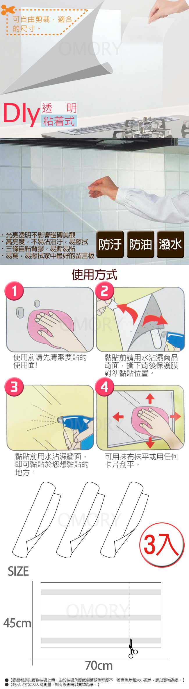 品名:【OMORY】透明防油汙壁貼70cm*45cm-3入
