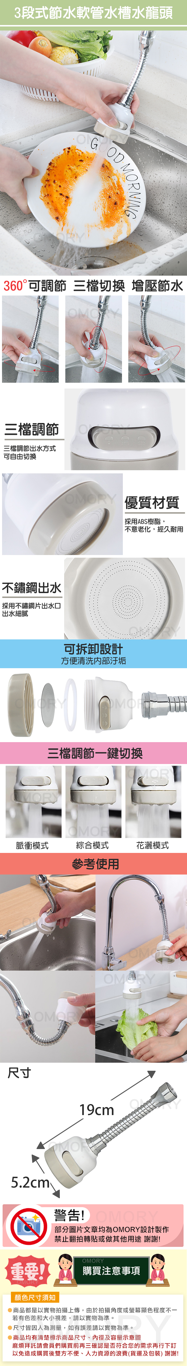 品名:【OMORY】3段式節水軟管水槽水龍頭-白色
