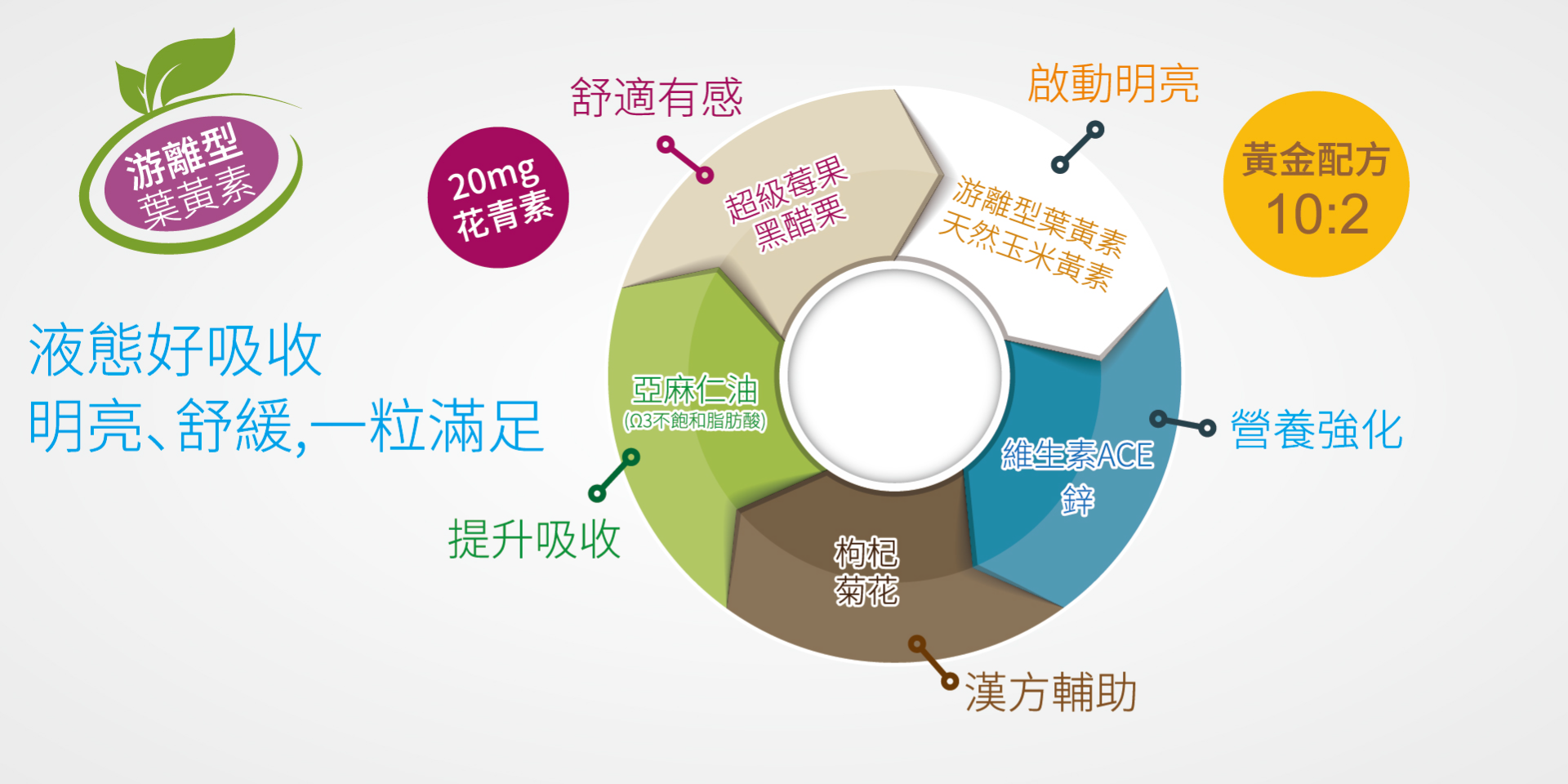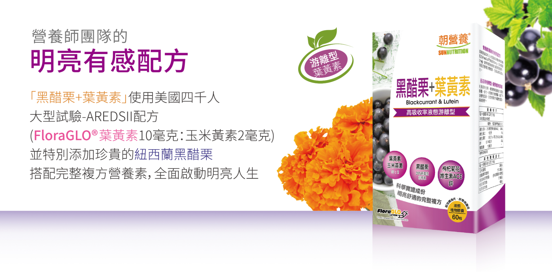 採用美國四千人大型臨床試驗(AREDSII)配方 (FloraGLO ®葉黃素10mg:玉米黃素2mg),並特別添加珍貴的紐西蘭黑醋栗,搭配完整複方營養素,全面啟動明亮人生。
