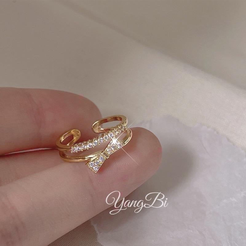 𝓨𝓪𝓷𝓰𝓑𝓲🎀甜美可期|鍍真金加厚14K蝴蝶結雙層質感戒指 Y402