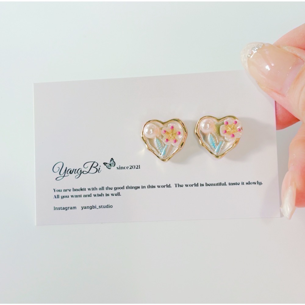 ♡耳環銀針材質偏軟、易彎曲,輕輕扳正即可。