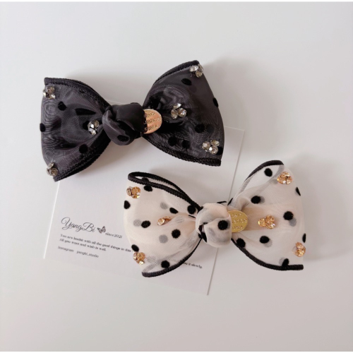 𝓨𝓪𝓷𝓰𝓑𝓲🕊️【實品質感更好】【韓國歐根紗波點蝴蝶結金牌髮夾】 V428