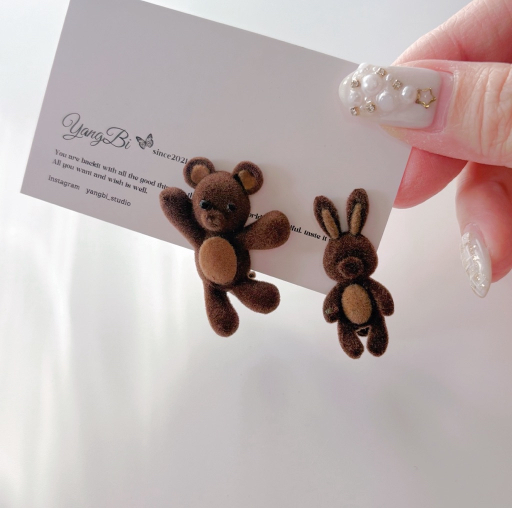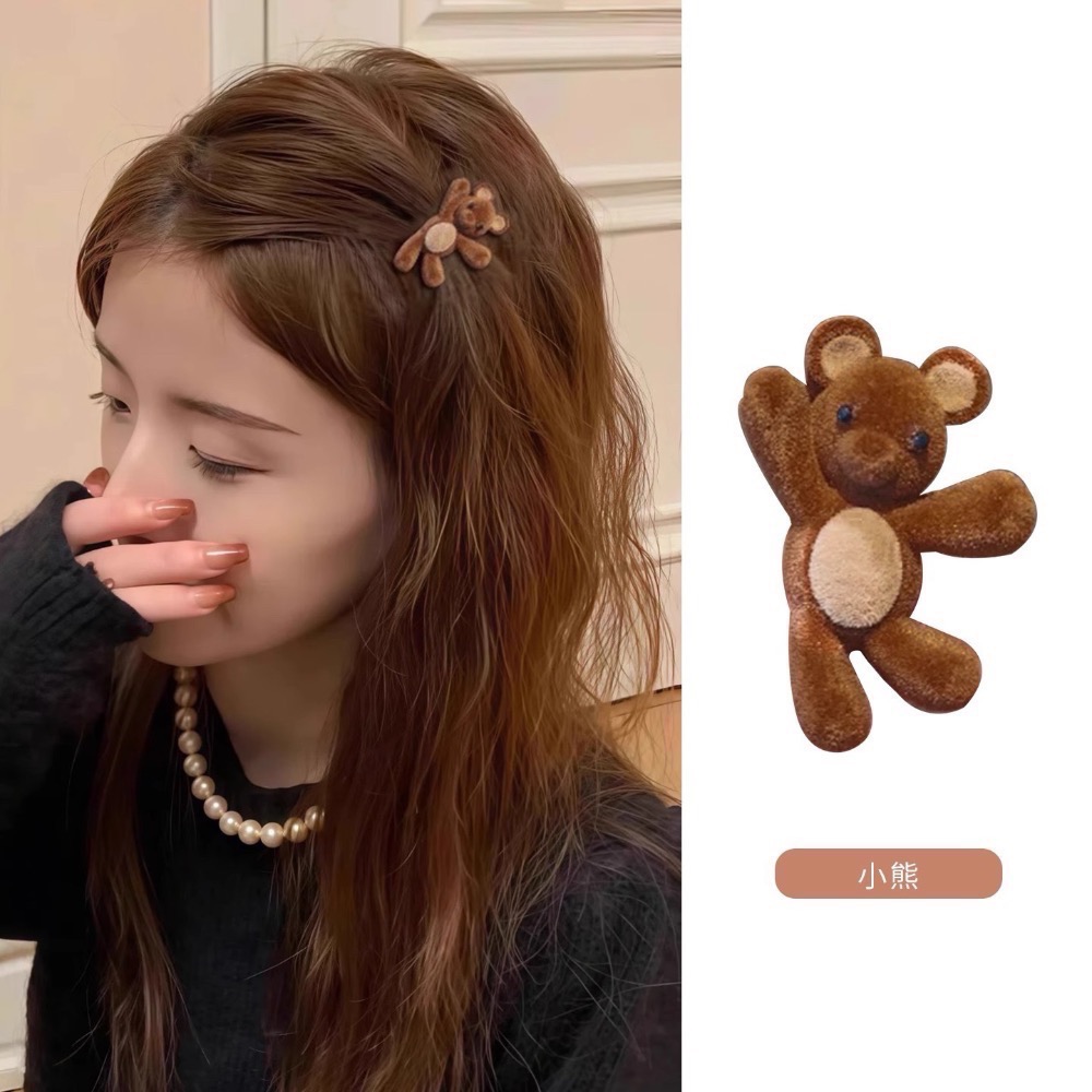 小熊、兔子髮夾都是實拍🐻植絨有的有非常微小脫落,像兔子照片這樣,是正常的喔