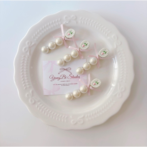 𝓨𝓪𝓷𝓰𝓑𝓲🕊️【質感女孩.鬱金香絲帶蝴蝶結珍珠髮夾】瀏海夾 V458
