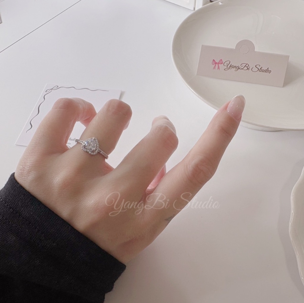 𝓨𝓪𝓷𝓰𝓑𝓲🕊️【手上自帶打光】925【爆閃滿鑽愛心戒指】浪漫氣質細戒 閃耀百搭 約會必備女生最愛Y941