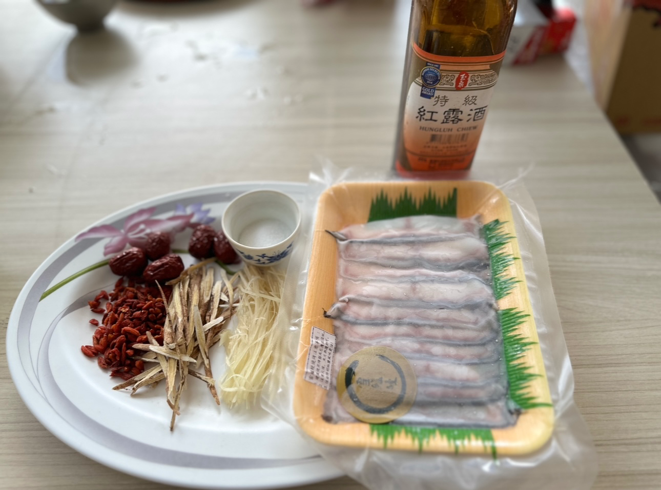 🧑🍳食材準備:黃耆、紅棗、枸杞、薑絲、紅露酒(或紹興酒)以及食鹽。