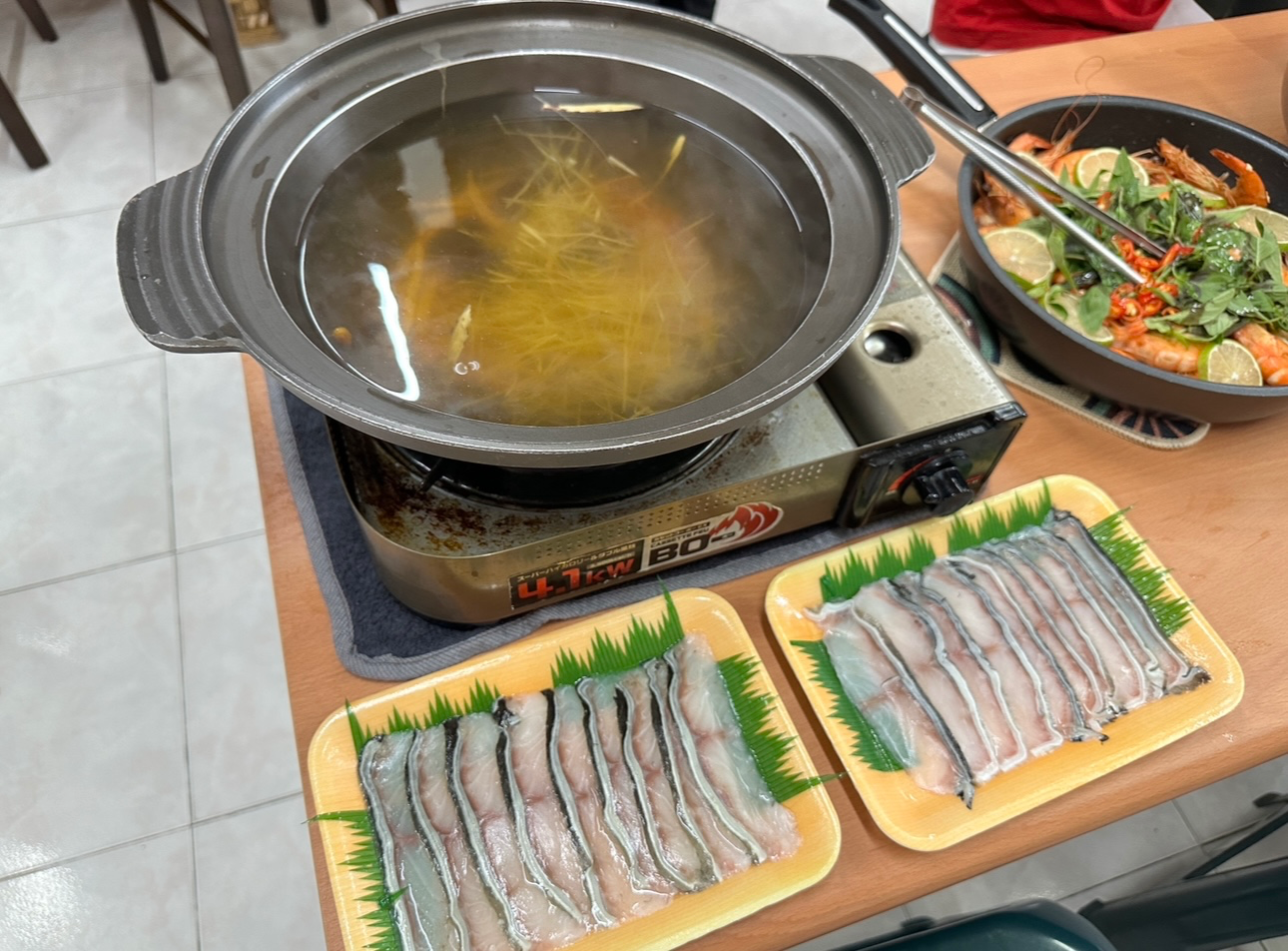 3.水滾後放入魚片,涮約30秒,即可食用。