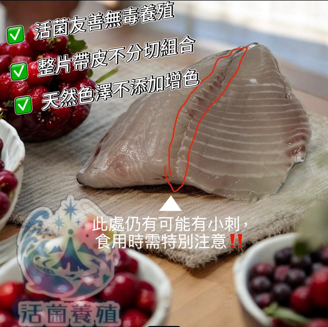 我們的台灣鯛魚排,不包冰、沒有充填一氧化碳,是自然的色澤,加上活菌養殖的飼養工法,