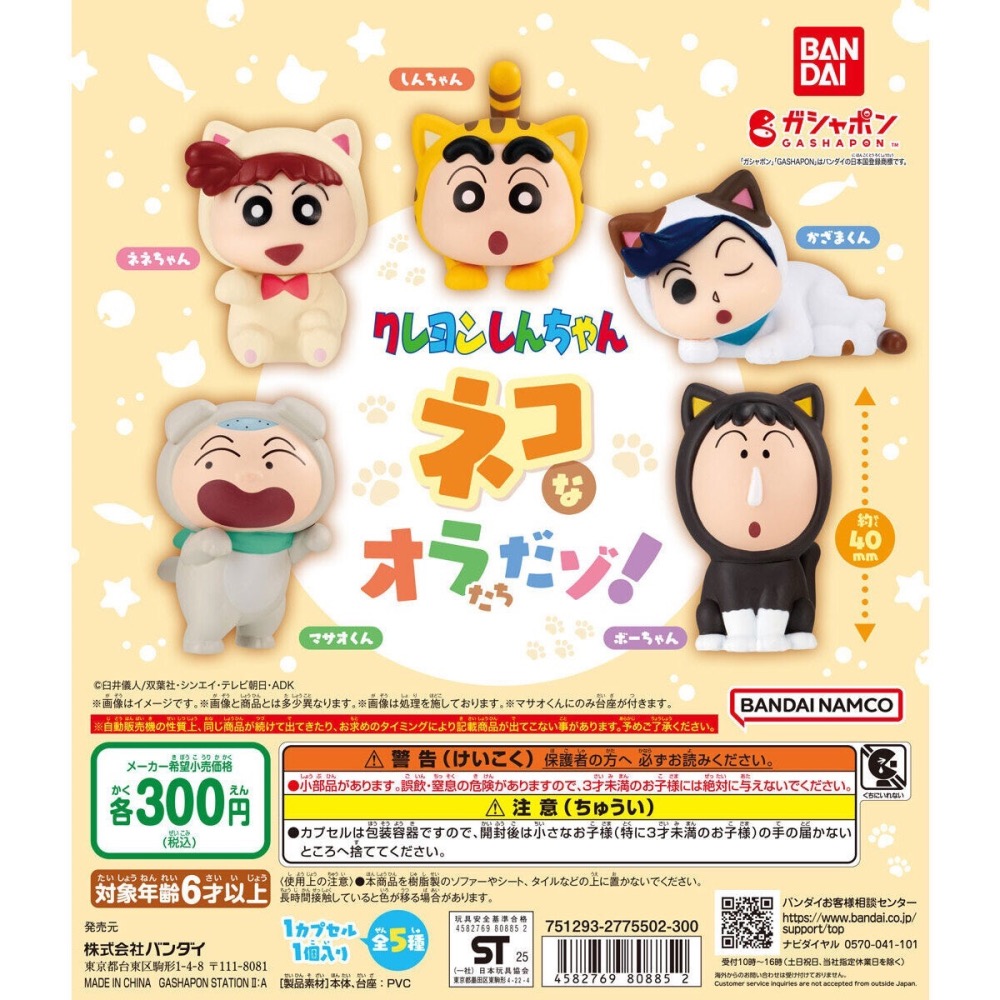 【現貨】萬代蠟筆小新貓咪裝扮公仔 全五種