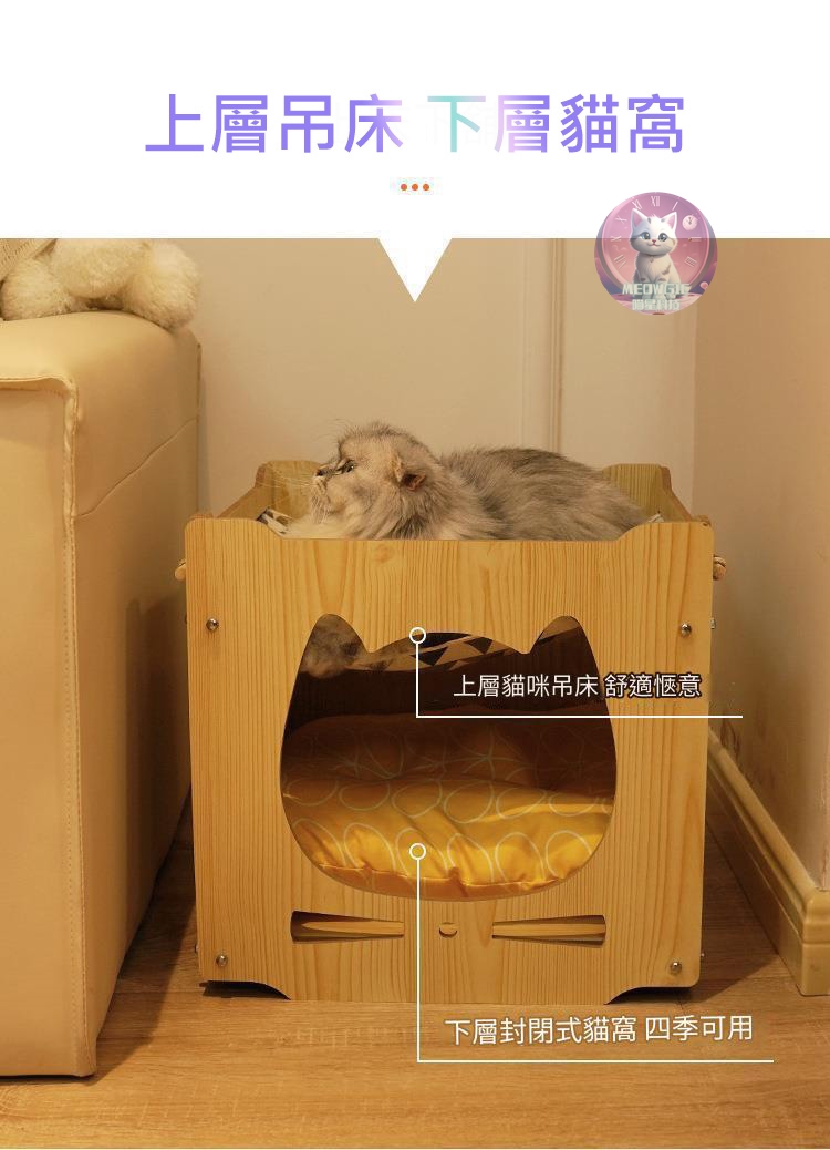 ✅兩用上床下窩:上方吊床下方貓窩