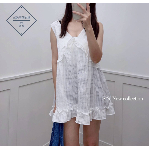 🌿Lu的平價衣櫃🌿🌸現貨38950e3✔️韓國同款🇰🇷甜美感V領荷葉邊造型短洋裝#甜美#荷葉邊#無袖#短洋
