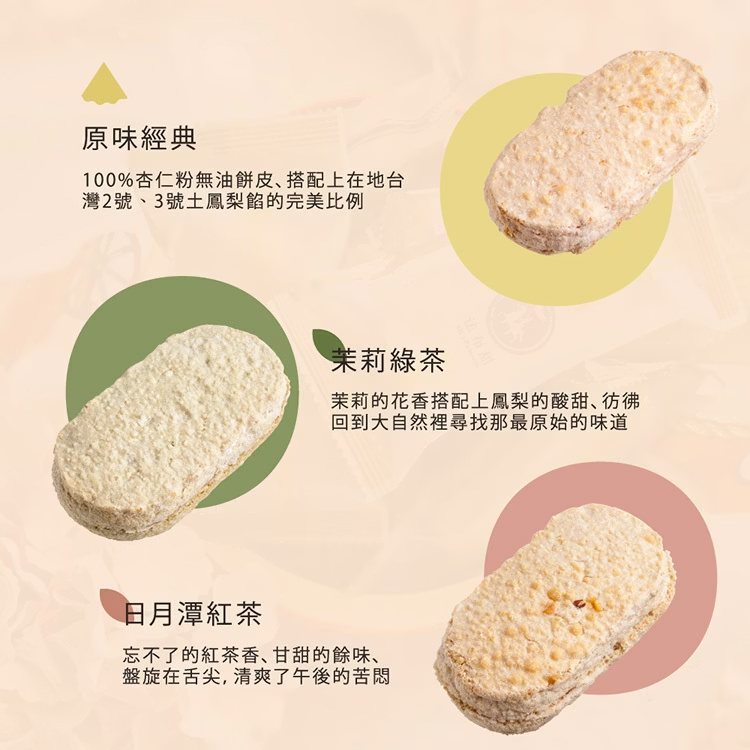 這款健康甜點以無添加油、無水、高比例杏仁粉製成,內餡選用嚴選台灣2號和3號土鳳梨,口感驚艷,絕對是野餐中的一大亮點。