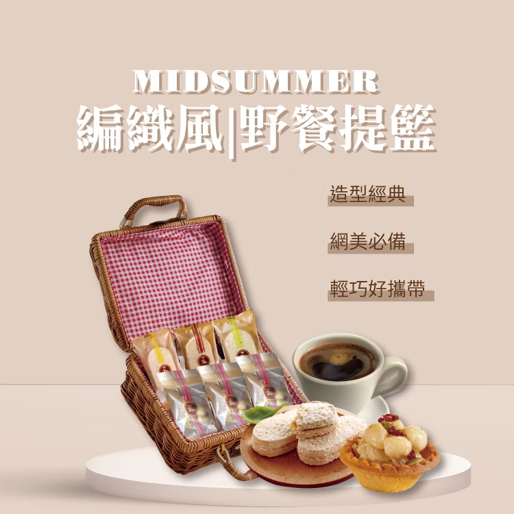 編織提籃是野餐的必備品,搭配上法式鳳梨酥,更能為野餐增添一份獨特的美味。