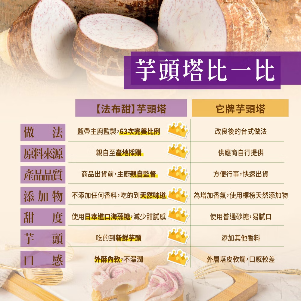 每口都吃的到濃濃芋頭香氣,手工職人焦糖流心 ,三層豐富綿密內餡,酥酥脆脆的奶油香塔殼,100%天然原色不添加人工色素,秋季限定不能錯過!