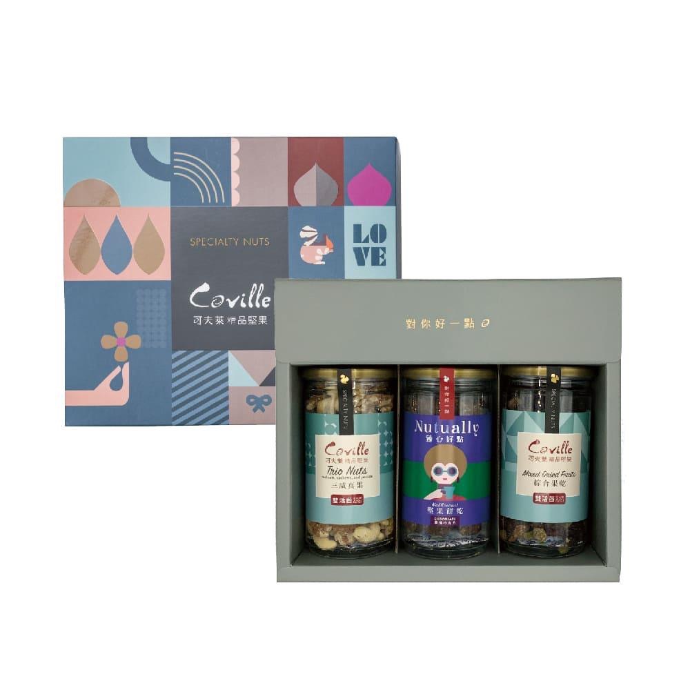• 臻心好點禮盒(雙活菌三威真果170g、雙活菌綜合果乾200g、堅果餅乾150g-口味隨機)