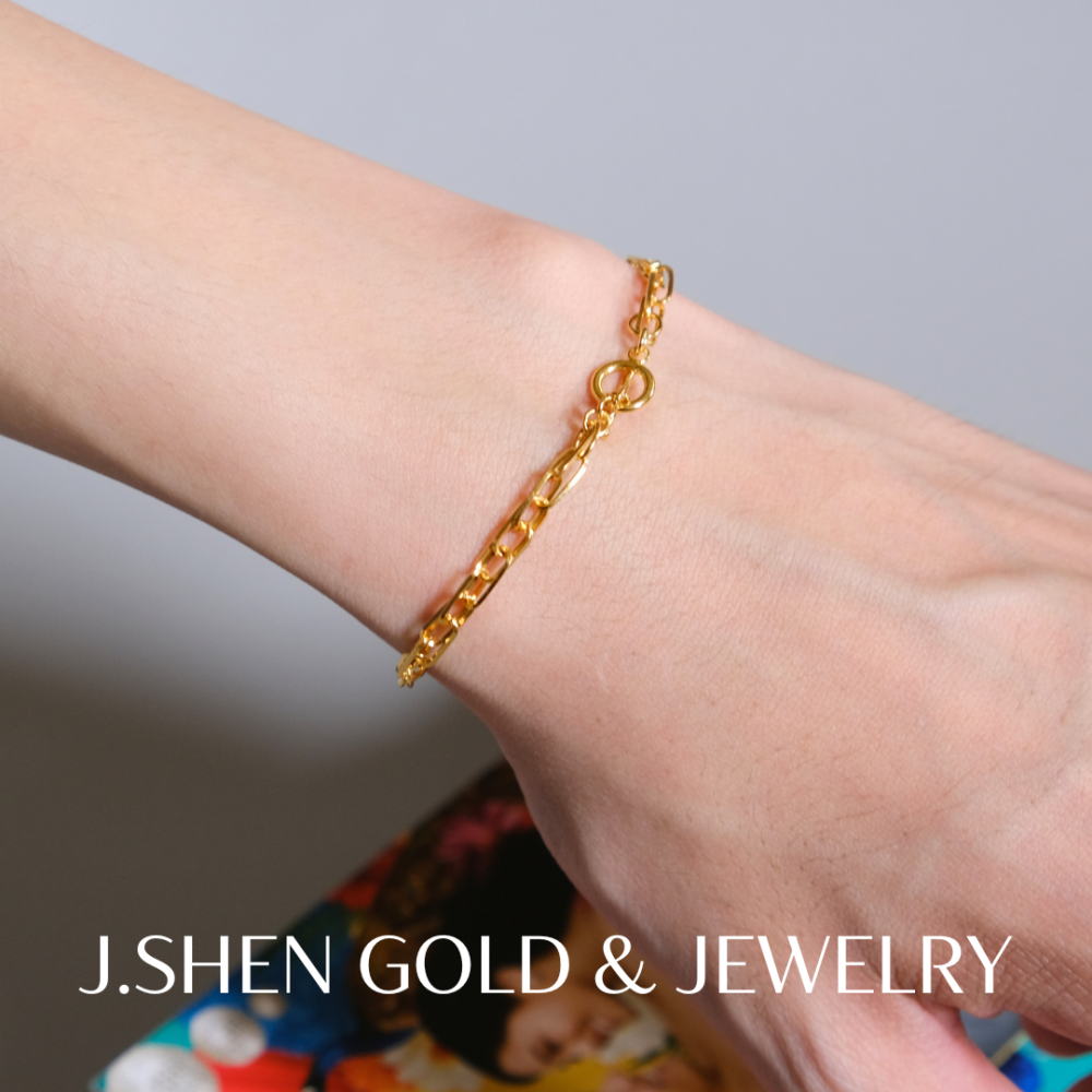 【品牌訂製款—手工製作】OT扣鏤空感黃金方環手鍊 𝑵𝒆𝒘! 純金金飾 黃金手鍊 黃金飾品 禮物