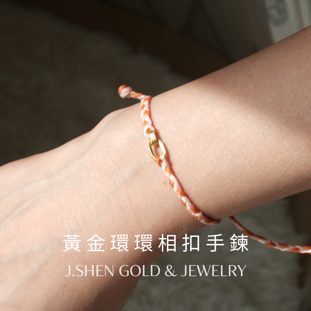 黃金環環相扣蠟繩手鍊 黃金手鍊 女生手鍊 男生手鍊 女生黃金手鍊 男生黃金手鍊 蠟繩手鍊 手鍊 幸福手鍊 純金金飾