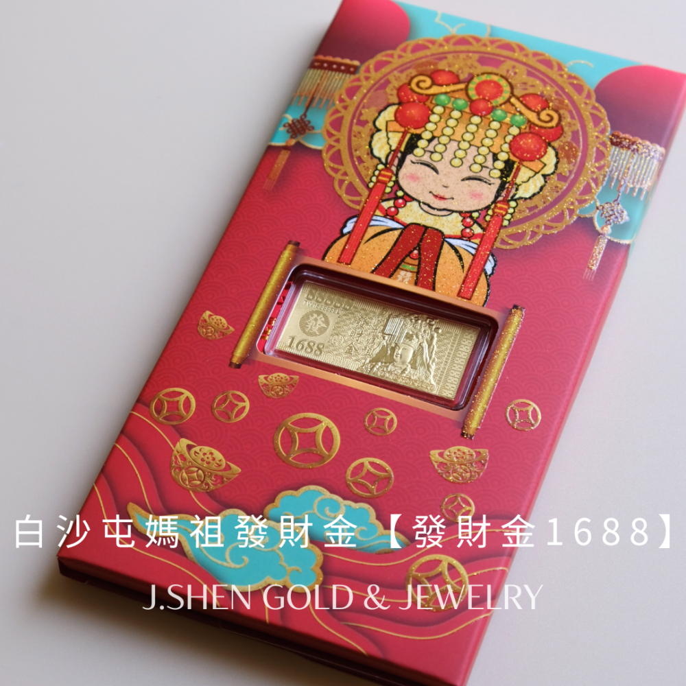 白沙屯媽祖發財金【發財金1688標記】黃金紅包 純金紅包 純金金飾 黃金飾品 禮物