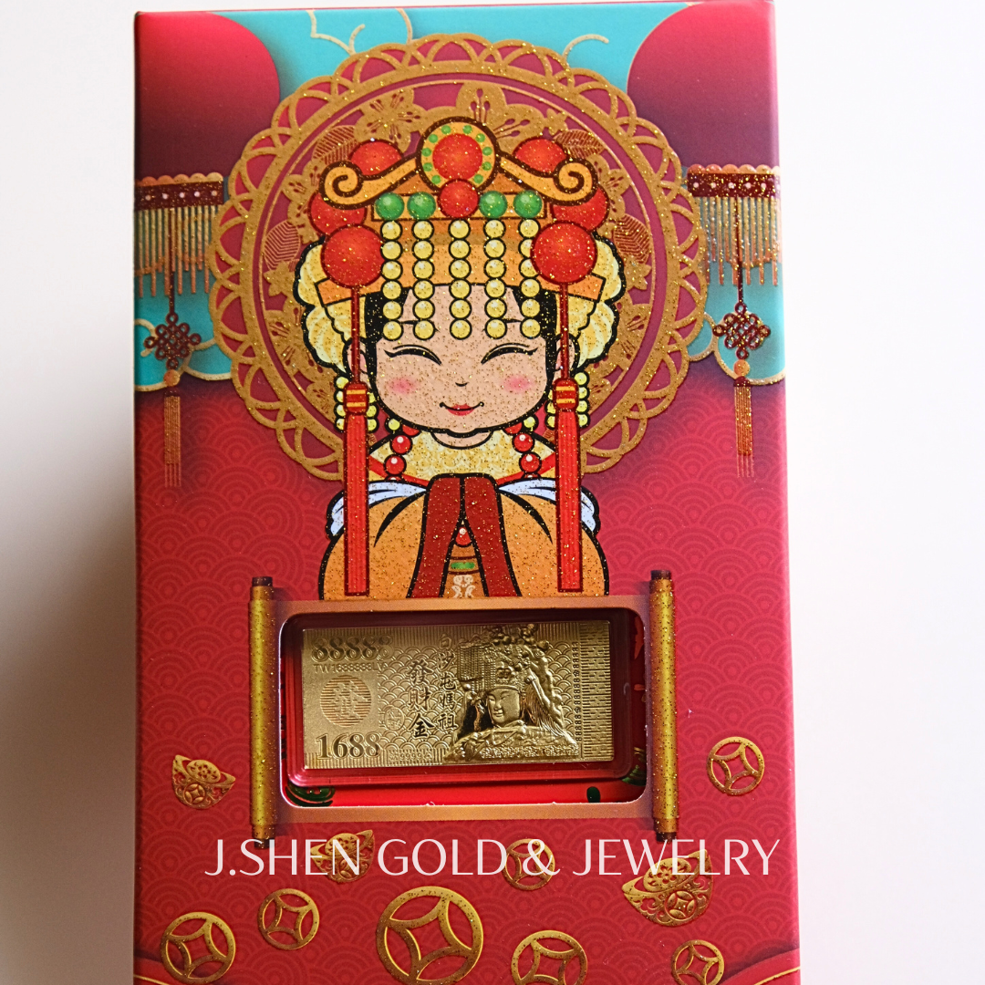 說明:紅包打開可放千元大鈔,且黃金千元可當吊飾拿出紅包使用。