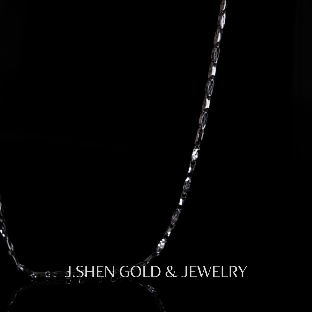 說明:圖中項鍊長48公分,工錢皆為6450元。(例:若完工時重2.63錢,白金以4500/錢計算的話,則價格為4500*2.63+6450=18285元。)