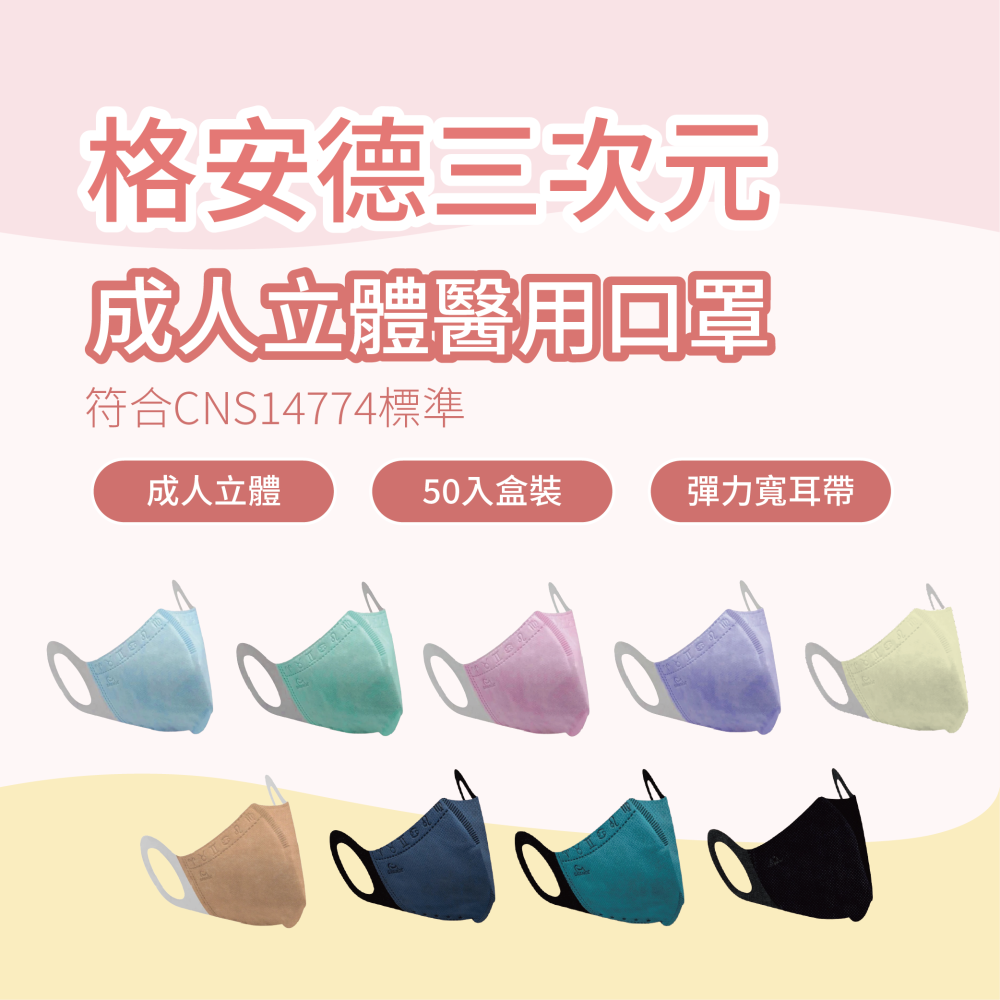 口罩國家隊👉格安德 3D醫用口罩(寬耳帶) 成人款50入盒裝