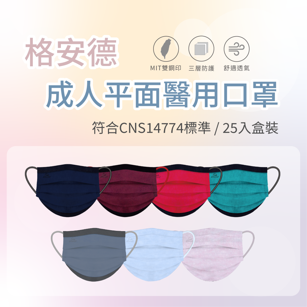 格安德平面醫用口罩,成人款25入盒裝 素色系列