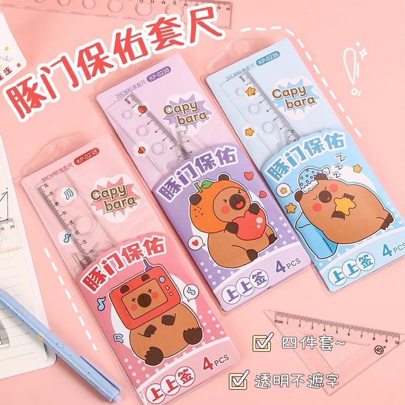 台灣現貨🇹🇼爆款卡皮巴拉學生套尺考試專用三角板量角器 直尺文具套裝