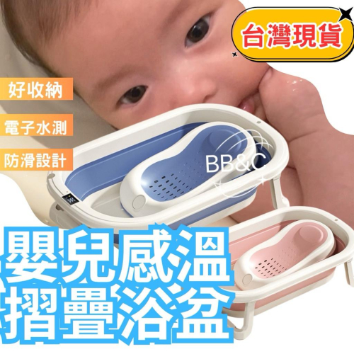 【台灣出貨】BB&C嬰兒感溫摺疊浴盆 觸屏溫度摺疊收納 不佔空間 溫度水測 電子溫度嬰兒幼兒適用水洗屁股浴盆防滑設計防摔