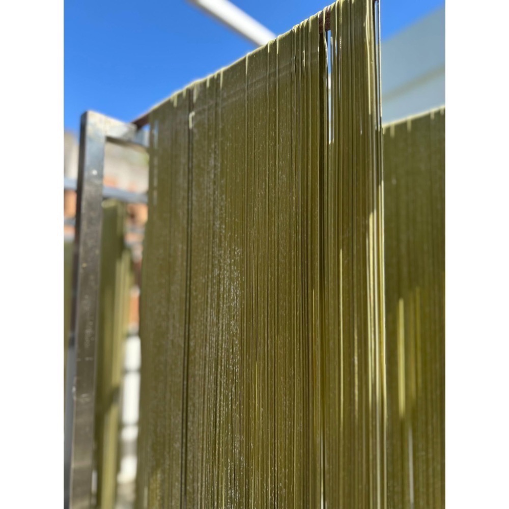 採用南投名間鄉「瑞丘樸茶」以自然農法有機栽種的青心烏龍茶粉製成,純茶粉無添加色素、香料,在烹煮麵條時有自然療癒的茶香,同時可以吃到茶葉的營養素。