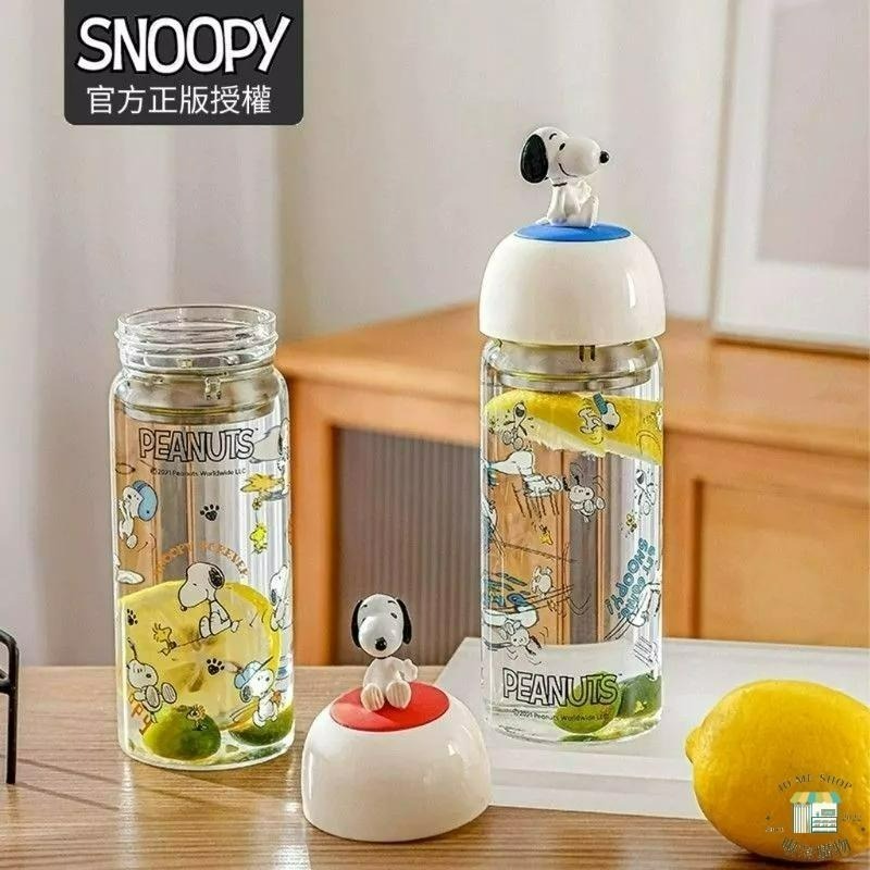 現貨🐾官方正品 Snoopy 史努比 公仔 玻璃杯 卡通 便攜 耐熱 茶漏 隨手 直飲杯 密封 環保杯 茶壺 泡茶 杯子