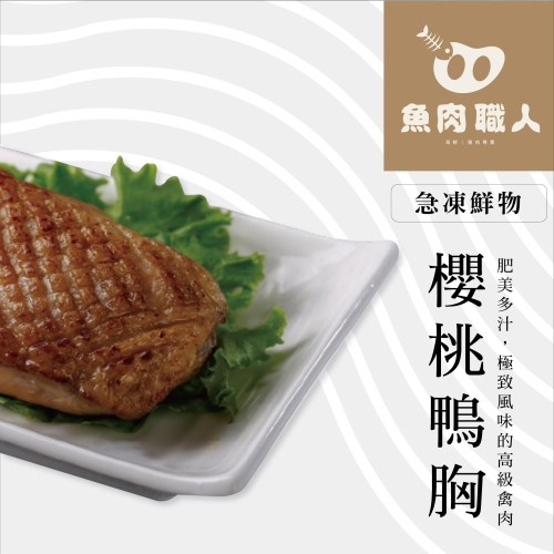 選自宜蘭養殖的優良櫻桃鴨取至鴨胸部位製成,肉質鮮嫩扎實,咀嚼起來多汁、甜潤、有彈性,無一般鴨肉的腥味,一口咬下肉香在嘴邊徘迴不已。
