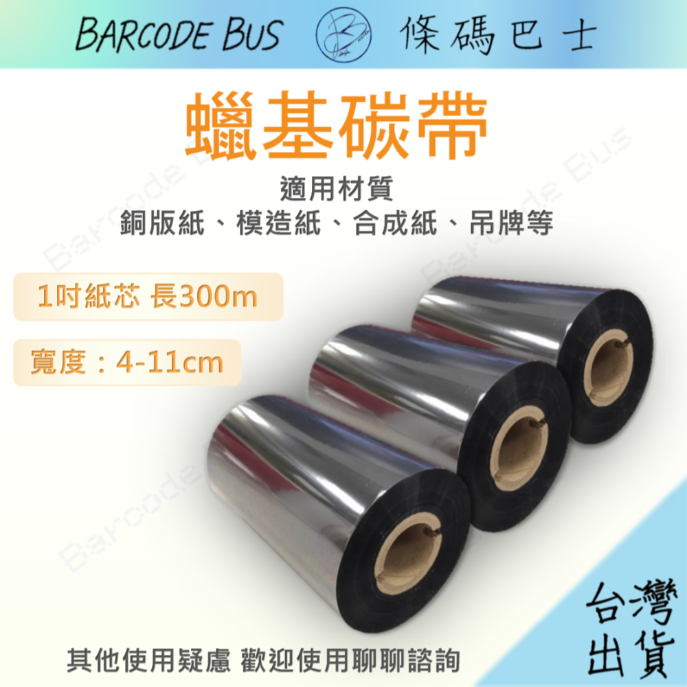 條碼巴士★蠟基碳帶★4-11cm*300M 1吋芯標籤機銅板雪銅模造吊牌TSC TTP247/345