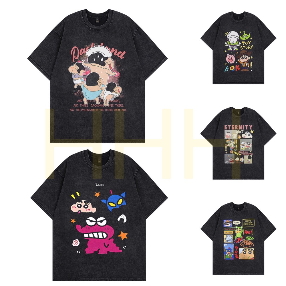 水洗短袖 t恤 蠟筆小新 野原新之助 小白 動感超人 動漫 卡通 日本 搞笑 惡搞 美式 籃球 慢跑 做舊
