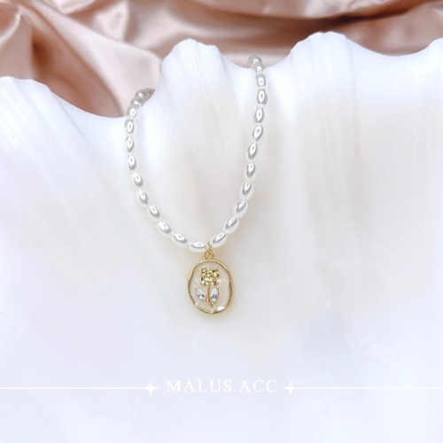 法式玫瑰珍珠項鍊 短項鍊 鎖骨鍊