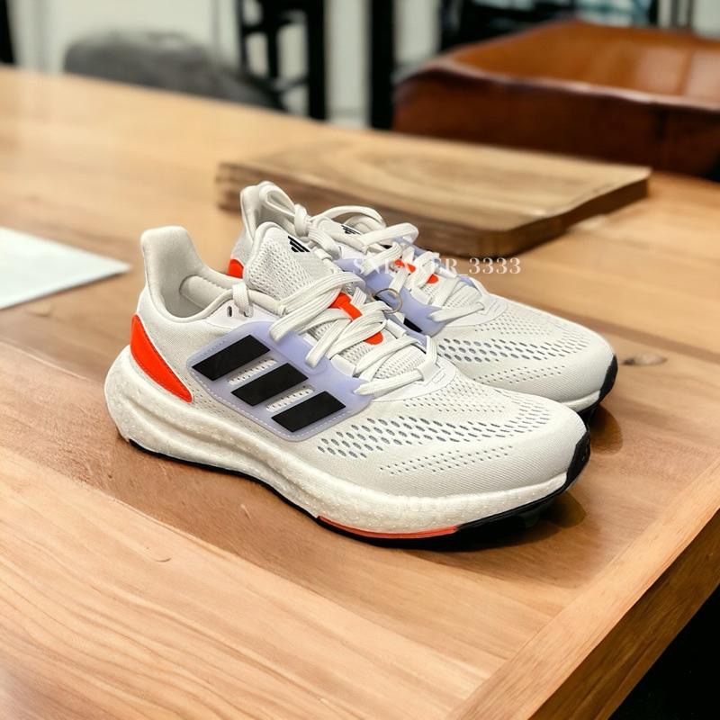 ADIDAS PUREBOOST 22👟愛迪達經典的全boost 中底😎白色鞋身搭配黑色三槓的TPU片,鞋尾橘色的麂皮設計更添加了一點色彩😍這絕對是很適合慢跑和出勤的一款鞋😉