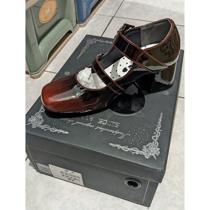 摩多MODO 漸變瑪莉珍 方頭中跟 漸變酒紅 37
