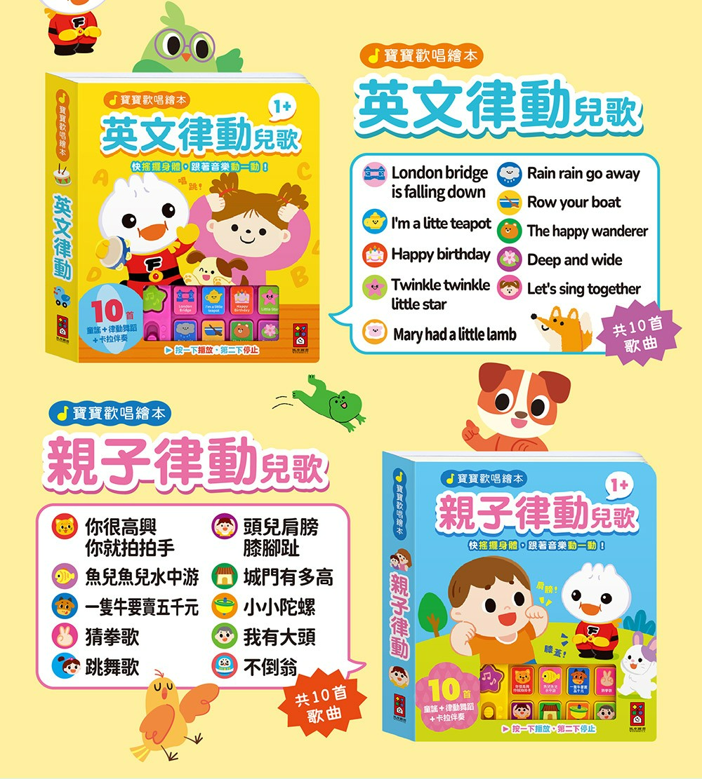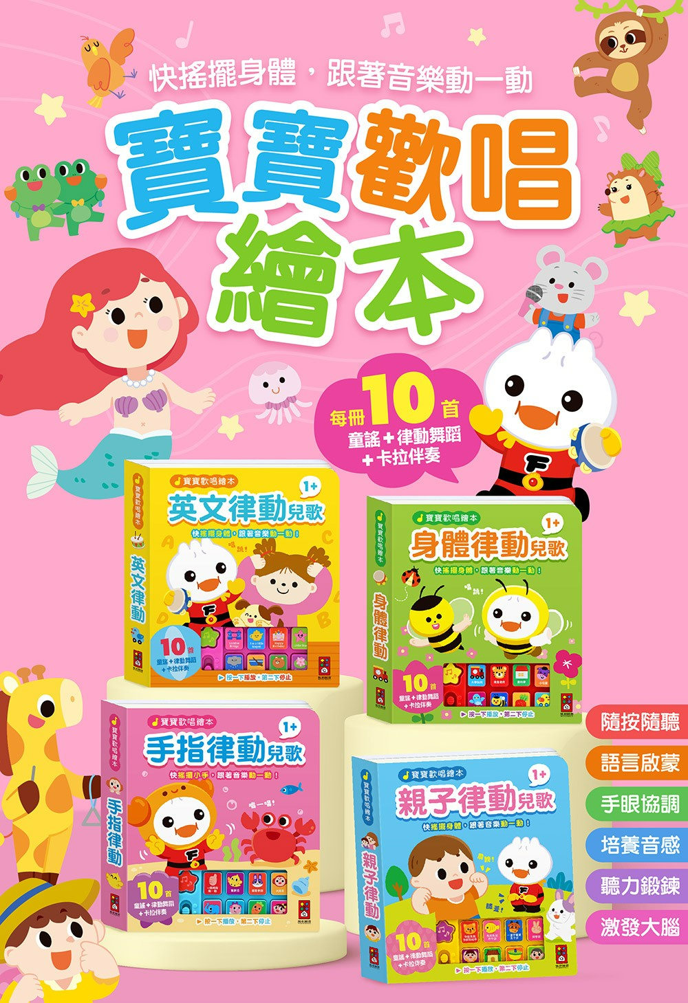 搭配簡單又充滿律動的舞蹈,可以跟著音樂一起唱唱跳跳,促進孩子肌肉發展,維持健康好習慣。