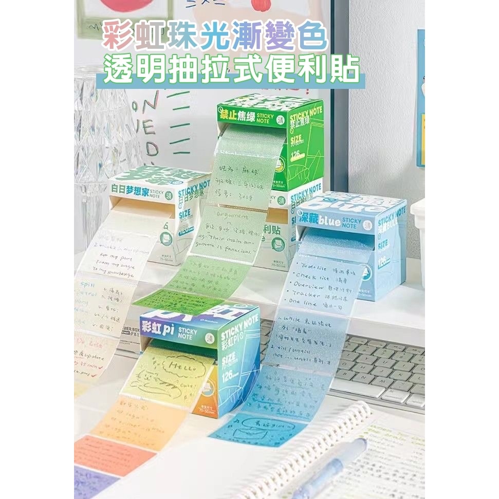 彩虹漸變色珠光透明抽拉式便利貼 (4盒組)