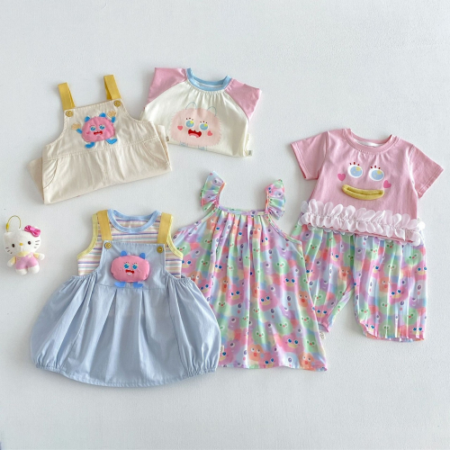 ✧ 𝕥𝕪𝕡𝕖:彩色裙子|彩條紋背心|玩偶背帶裙|米色撞粉T恤|卡通背帶褲|粉色花邊T恤|滿印彩色褲子