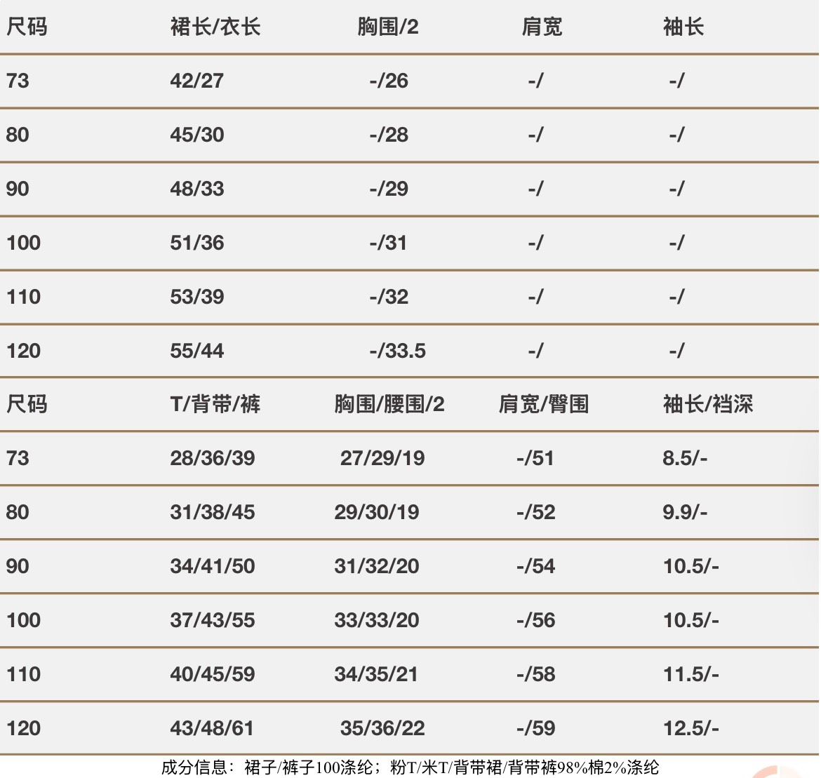 ✧ 𝕄𝕒𝕥𝕖𝕣𝕚𝕒𝕝:裙子/褲子100%滌綸;粉T/米T/背帶裙/背帶褲98%棉2%滌綸