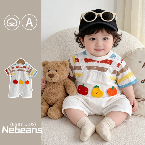 寶寶夏季番茄條紋假背帶包屁衣(含襪子)