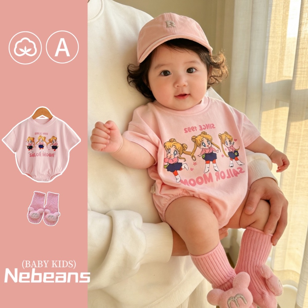寶寶夏季美少女戰士短袖包屁衣(含襪子)