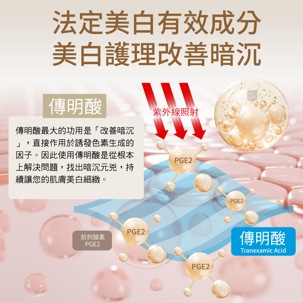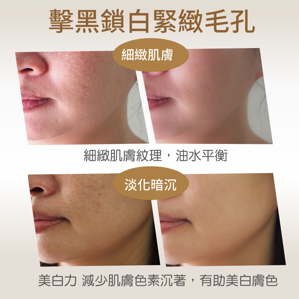 一瓶從肌膚毛孔基礎問題開始,改善整體膚況,變得更美白、細緻,讓肌膚有感升級,膚質不僅僅是表面上變好,而是由內而外呈現出光潤明亮。肌質改善後,連底妝使用上,也比以往更服貼持久。
