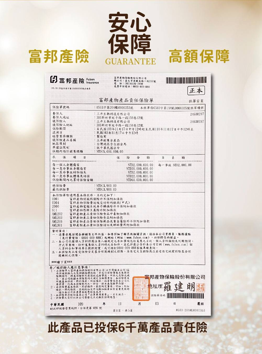 🌟富邦產物保險6000萬產品責任險、消費者安心有保證